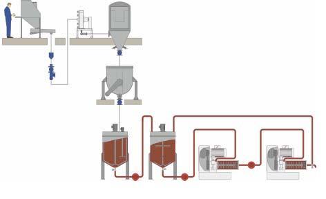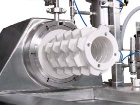 Product inlet via rotor / immersion tube system prevents back flow of grinding media into the feed line.